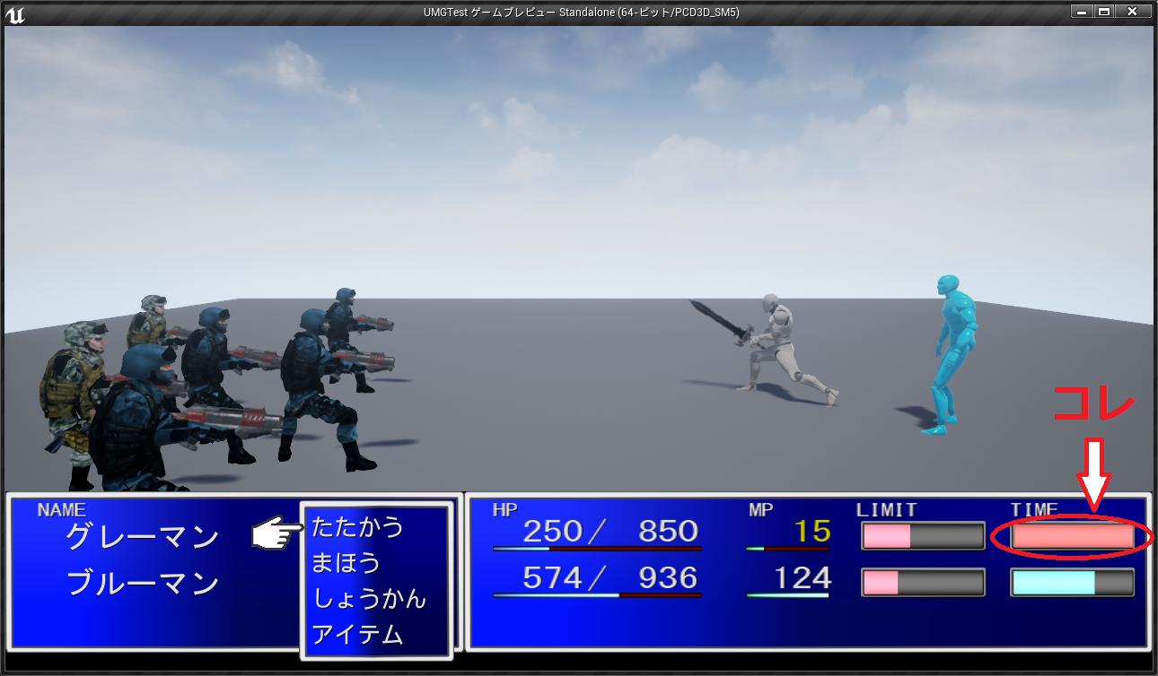 ここではActiveTimeBattleの肝である、プレイヤーの時間を管理するTimeゲージを実装します。