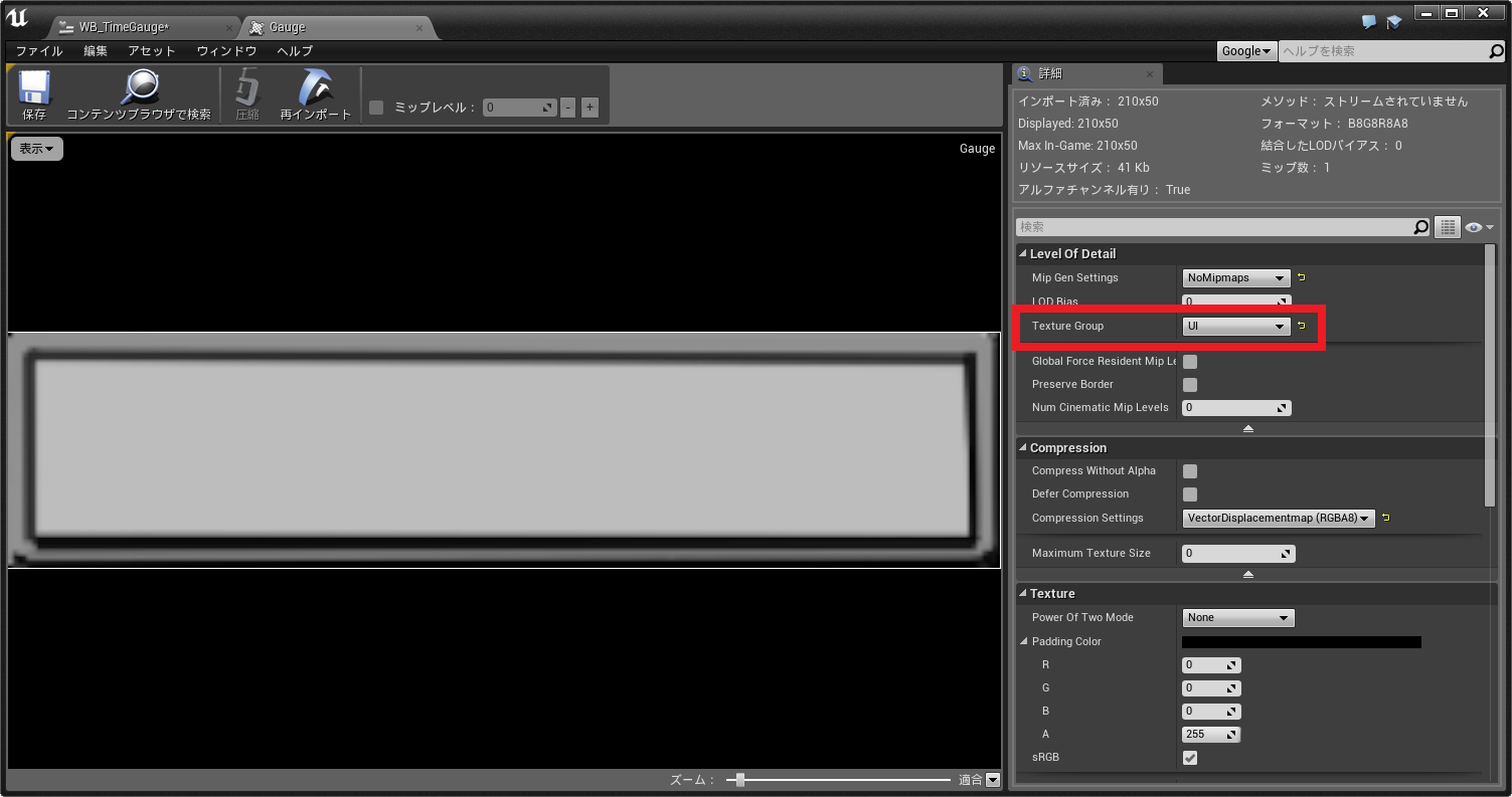 ゲージ部は動的に変化させる必要があるため、マテリアルを設定します。