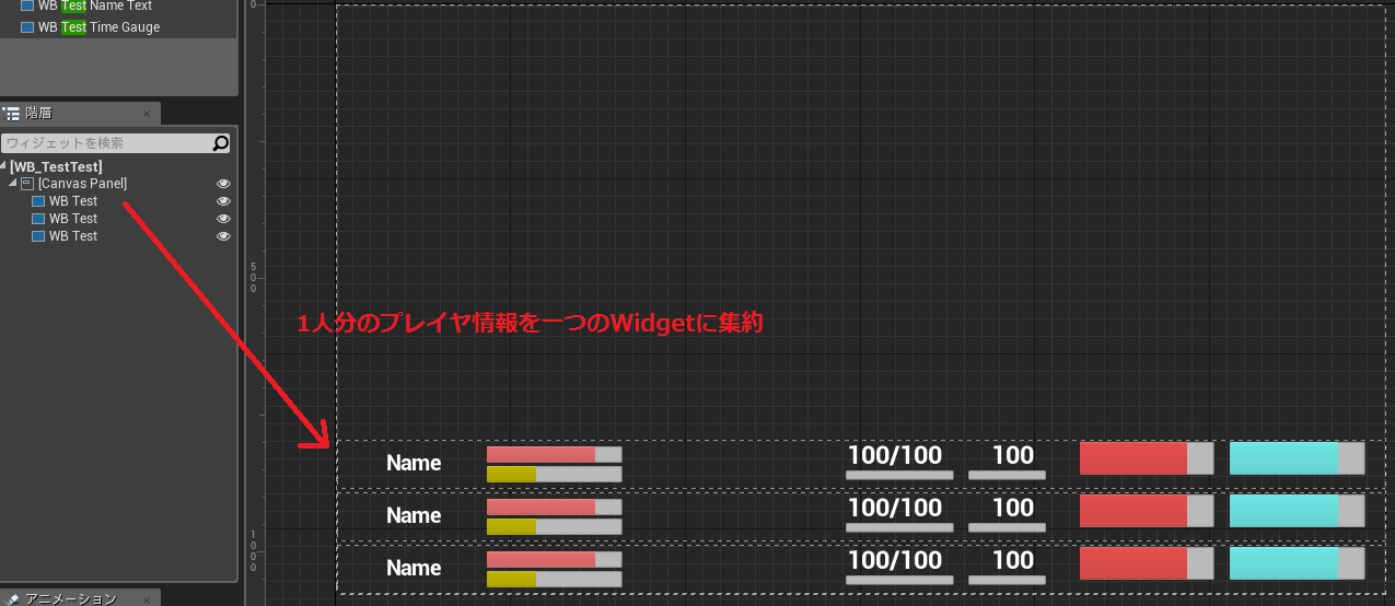 上記はパーツ化したTimeゲージや名前テキストを組み合わせたWidgetです。