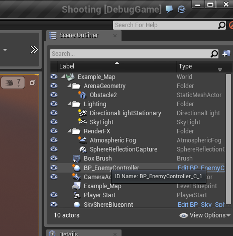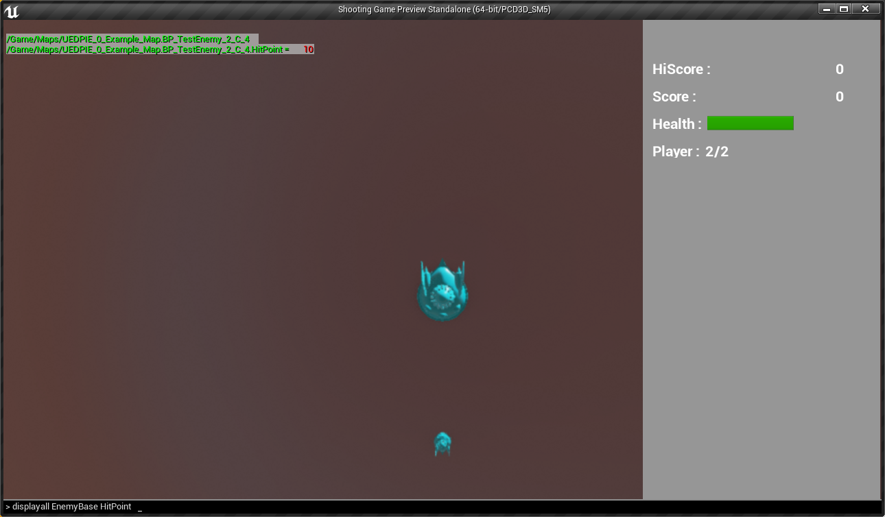 ②の継承クラスをBlueprintに作成。"1"キーを押して実行。