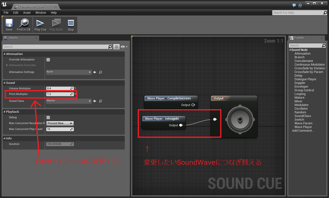 ②の継承クラスをBlueprintに作成。"1"キーを押して実行。