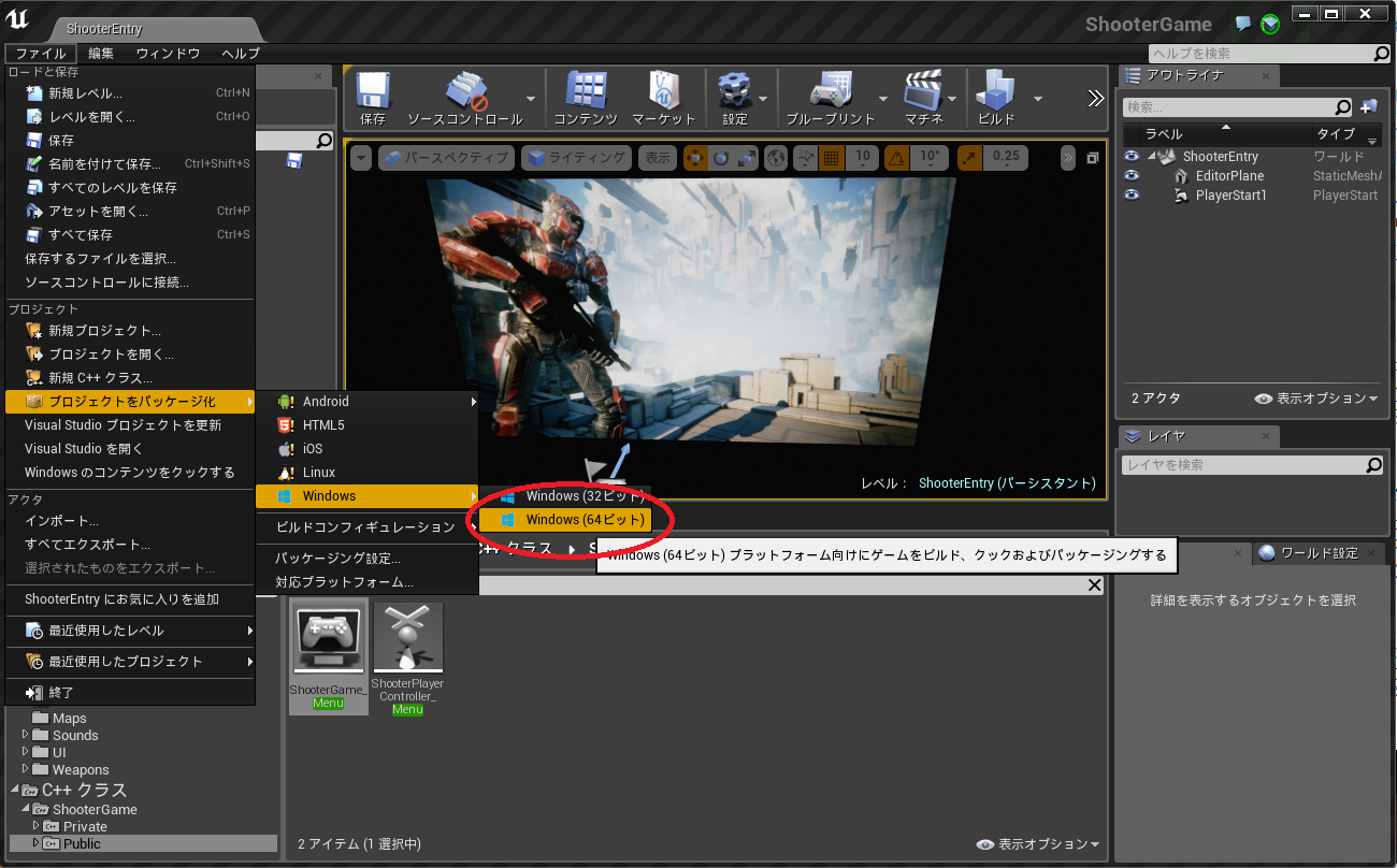 IDEでUE4プロジェクトをビルド UBTで再ビルド |