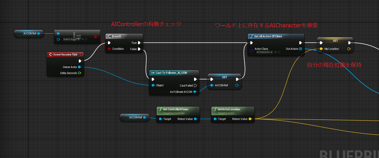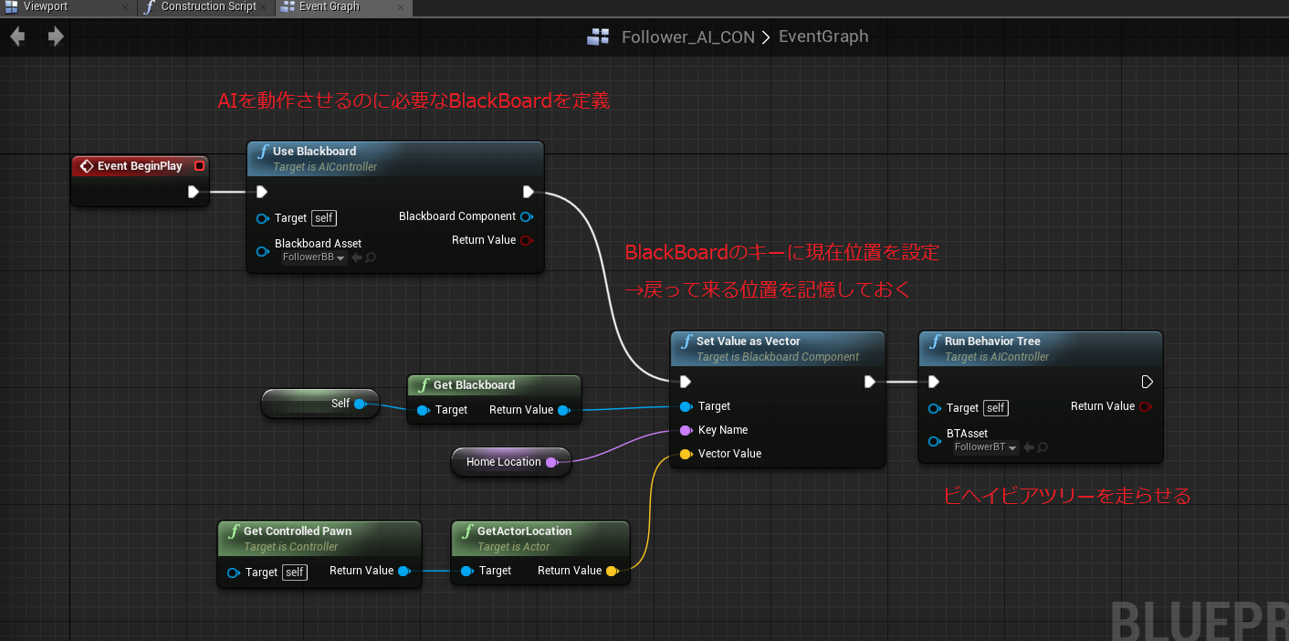 AIキャラクターに設定するAIControllerの中身です。
