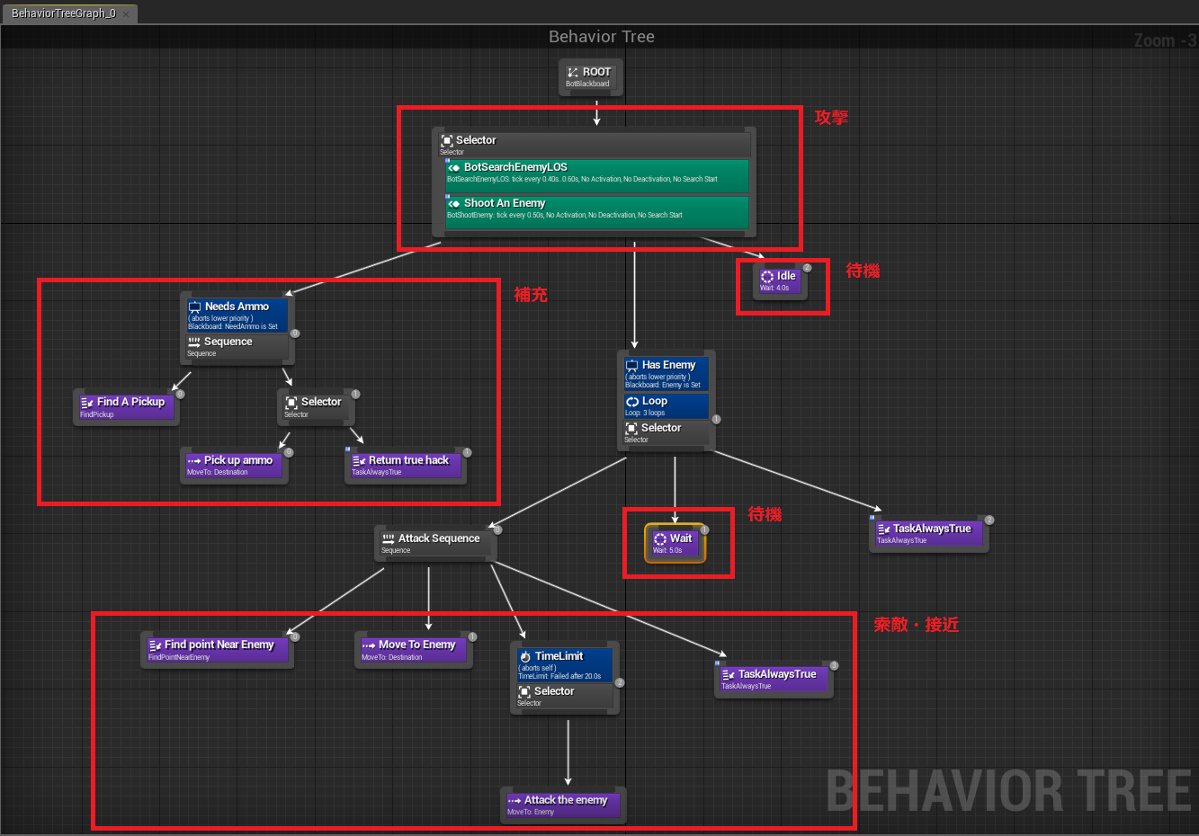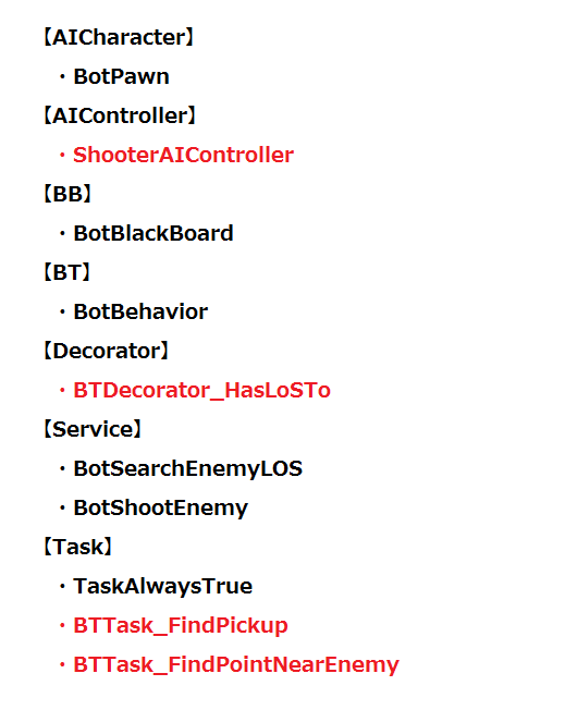 1.の各項について、AIキャラクターの動作を制御するのがBTのタスクになります。