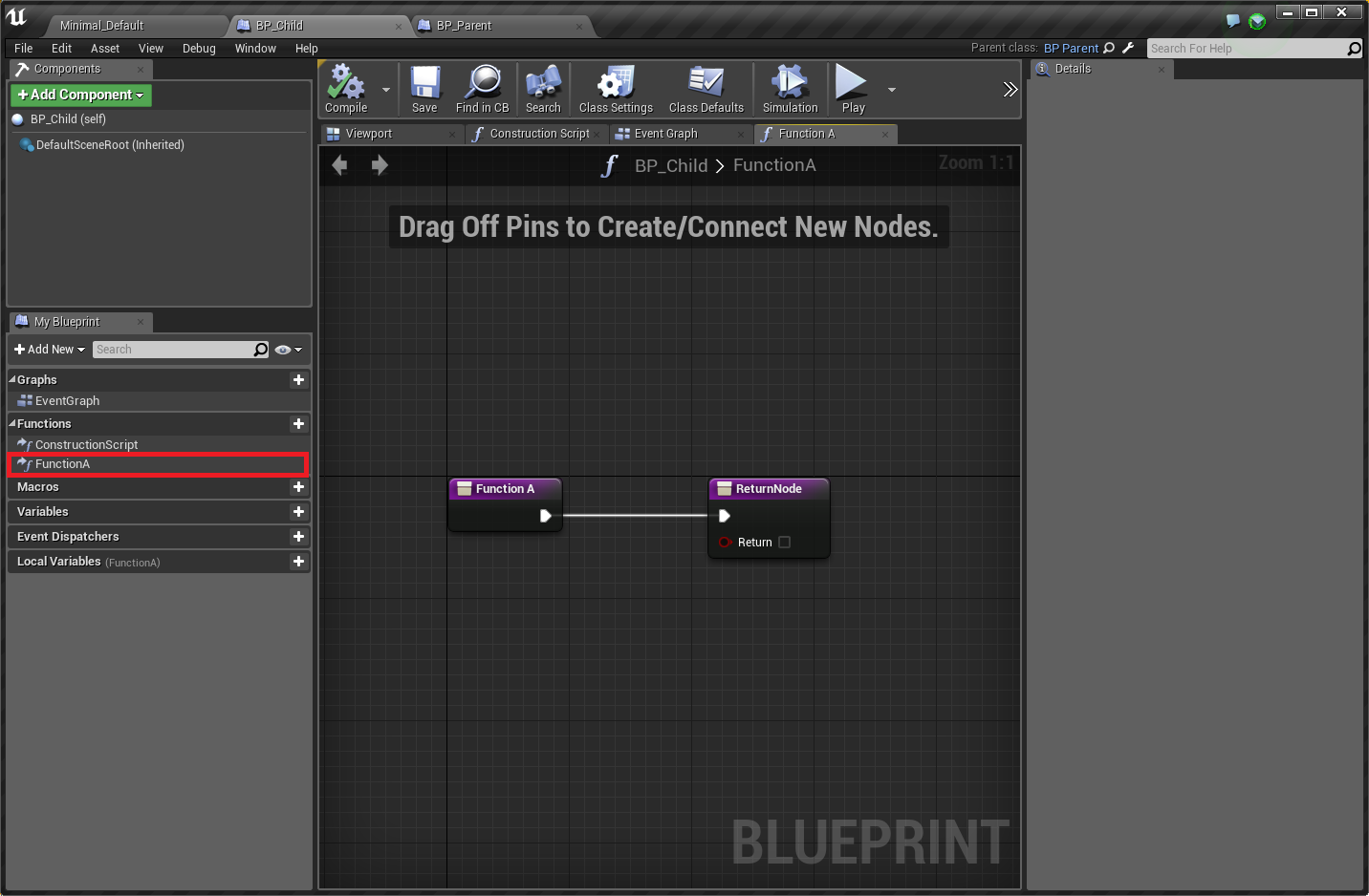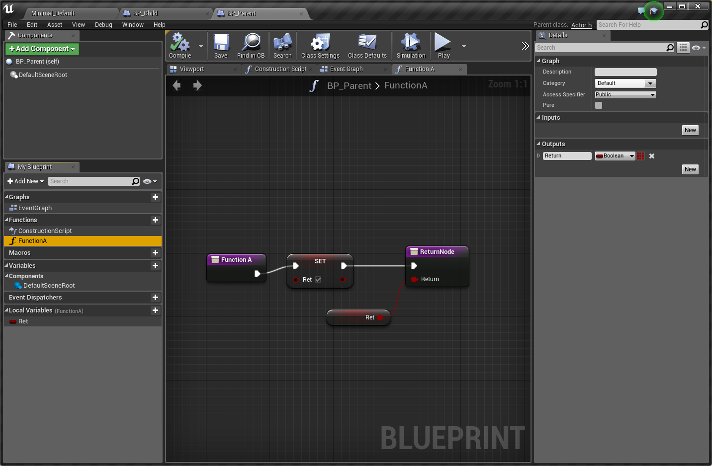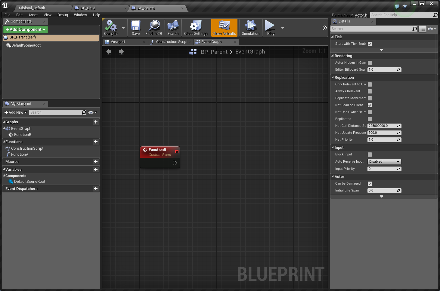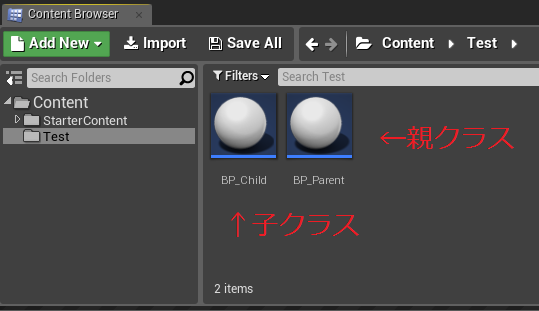 例えば、BP_Parent(親クラス)の継承クラスであるBP_Childがあった場合、
