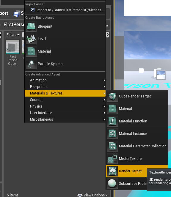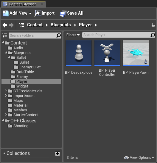 ④Blueprint MyBlueprintの折りたたみとViewport